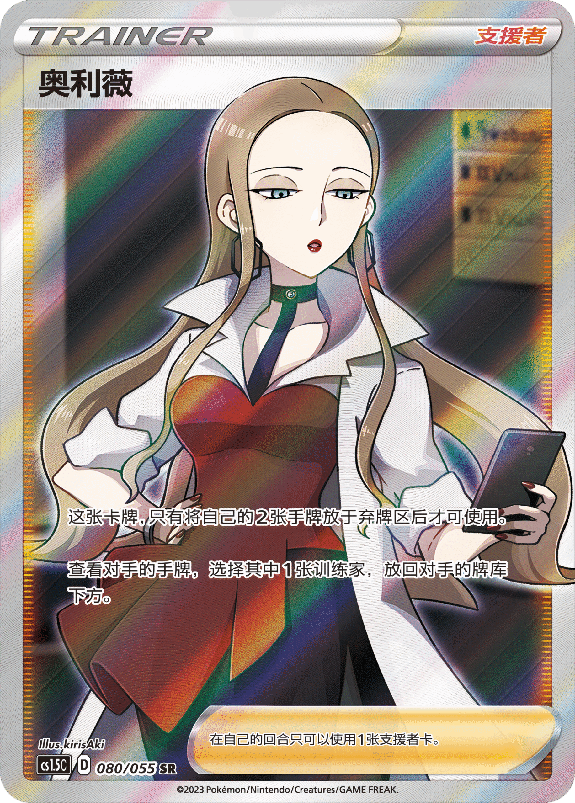支援者卡奥利薇可通过弃掉自己的2张手牌,将对手手牌中的1张训练家卡放回牌库的最下方。配合锹农炮虫V的【麻痹伏特】,让对手在下一回合陷入泥沼。