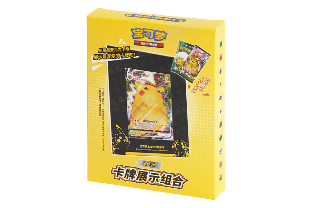 宝可梦卡牌展示组合 皮卡丘产品规格:皮卡丘展示卡框1个,【极巨争锋 雷】补充包(25张装)1包,【极巨攻防】强化包(6张装)1包。