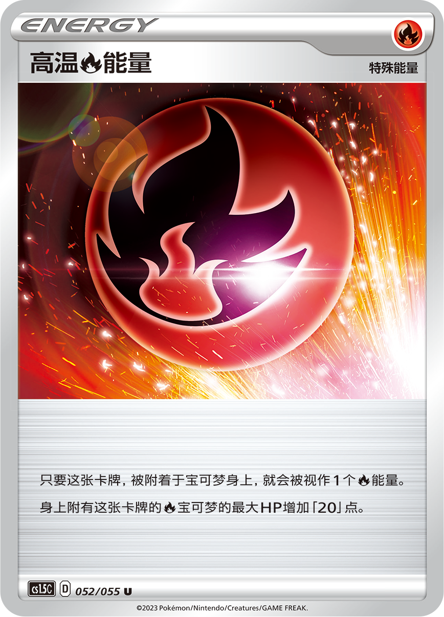 【高温火能量】可为被附着的火属性宝可梦增加20点最大HP,该效果还可以叠加哦,如果给焚焰蚣VMAX附着4个【高温火能量】,会有怎样的加强呢?