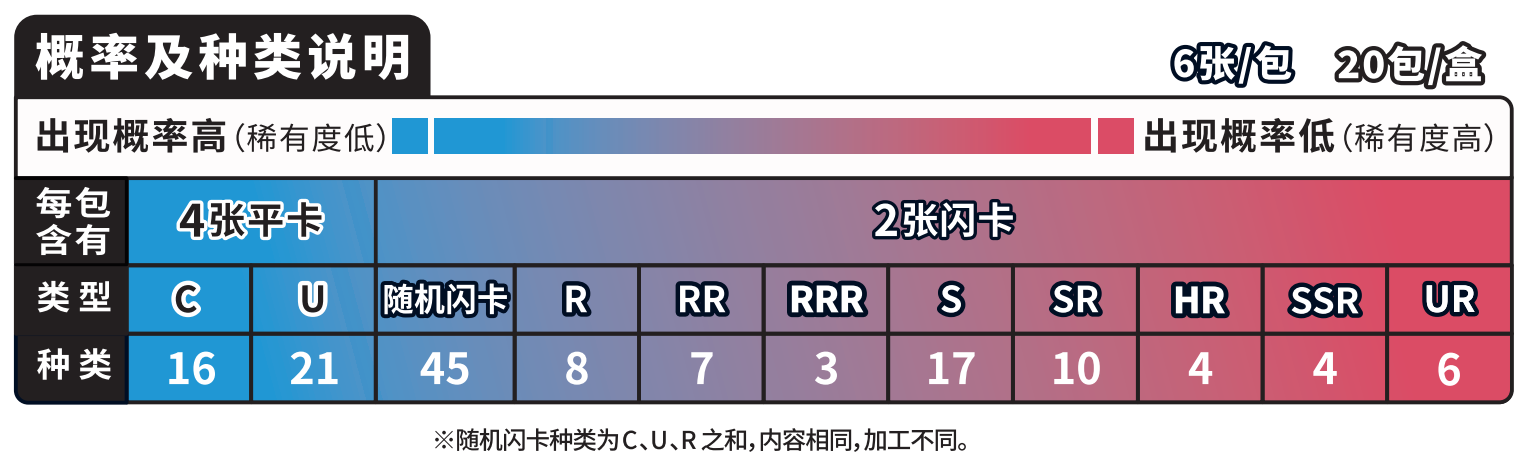 | 单包商品内容: | 内含6张卡牌(包含2张闪卡) |