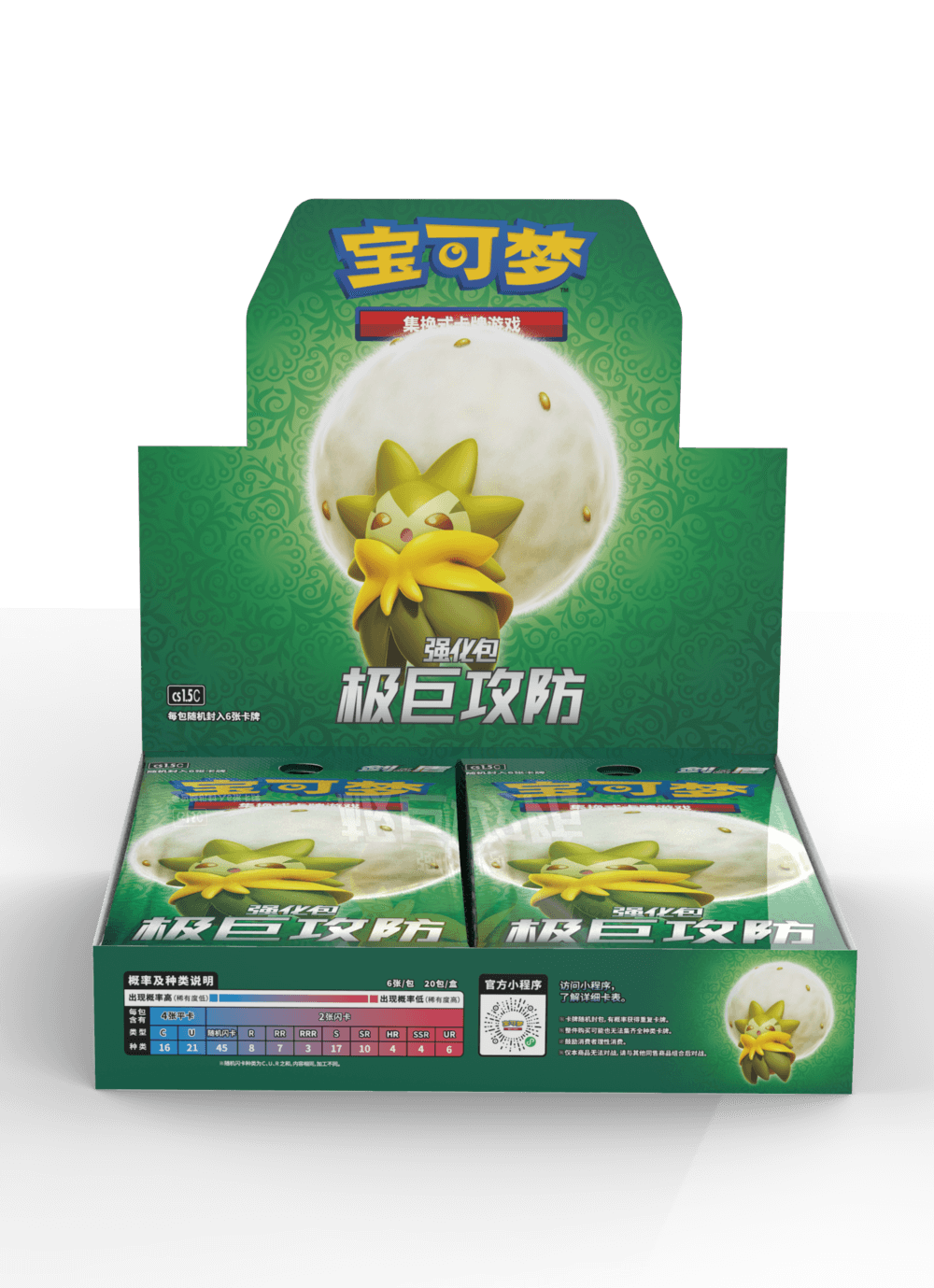 宝可梦卡牌强化包每盒内含20包强化包,每盒300元。