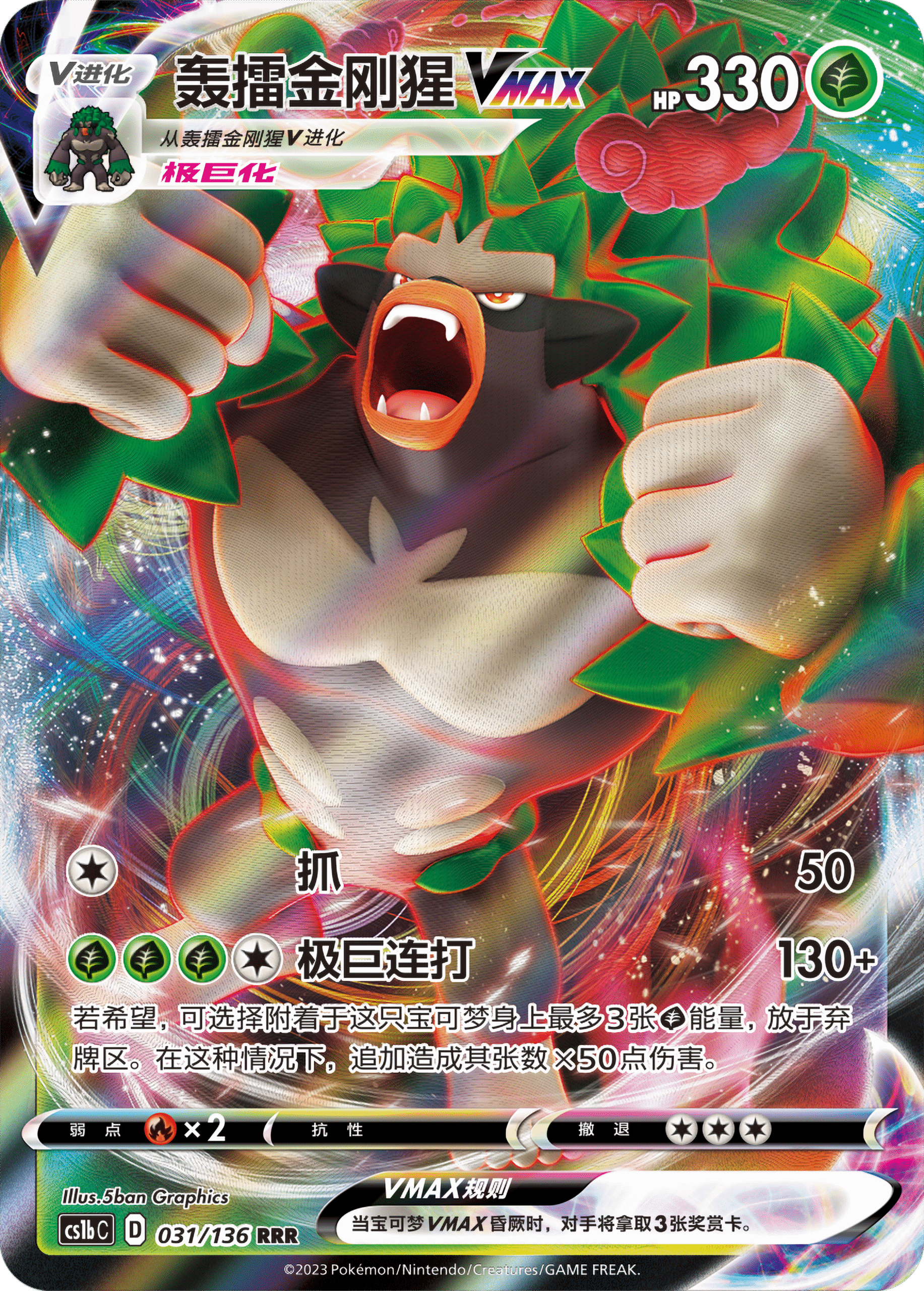 全新的宝可梦VMAX中便可能出现RRR卡牌,卡牌经过表面特殊加工,更加凸显宝可梦VMAX的强大魄力。