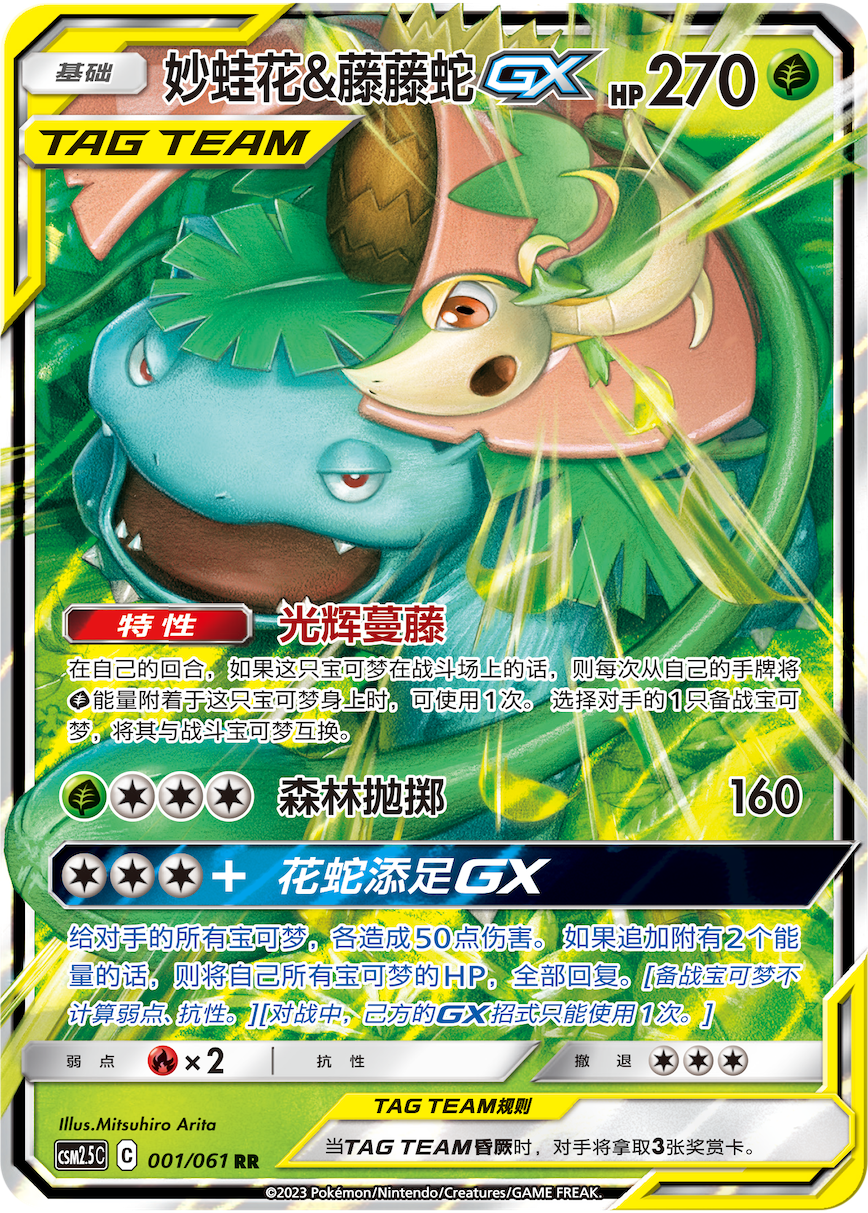 给妙蛙花&藤藤蛇GX附着草属性能量时,特性【光辉蔓藤】便可选择对手1只备战宝可梦与战斗宝可梦互换。