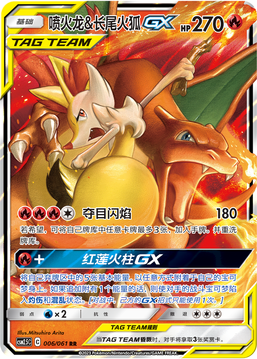 喷火龙&长尾火狐GX的【夺目闪焰】不但能造成180点高伤,还可从牌库内寻找任意3张卡牌,为下个回合做好准备!