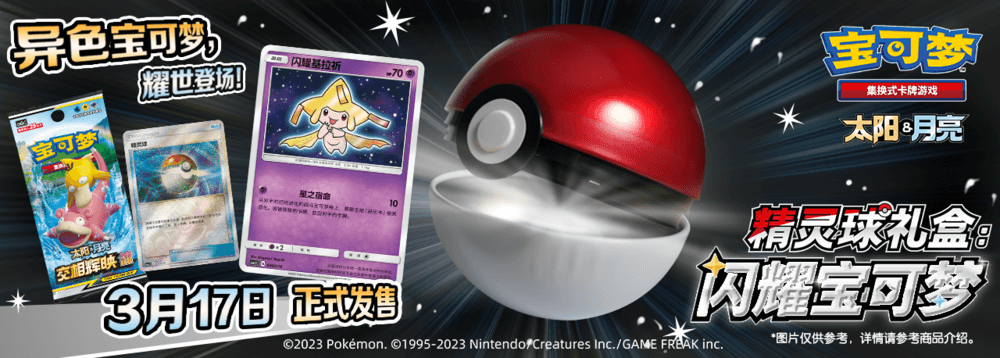 宝可梦卡牌产品【精灵球礼盒:闪耀宝可梦】将于3月17日正式发售,训练家届时可在线下店铺或者宝可梦天猫旗舰店(店铺名:宝可梦玩具旗舰店)进行购买。