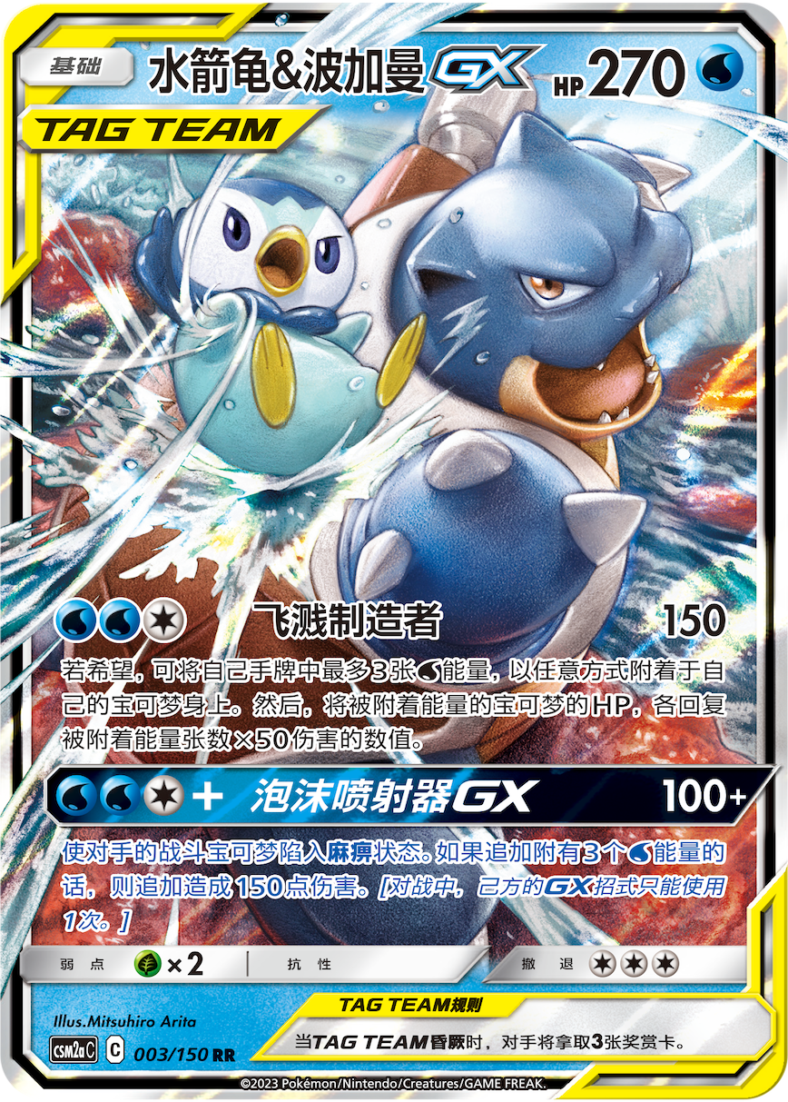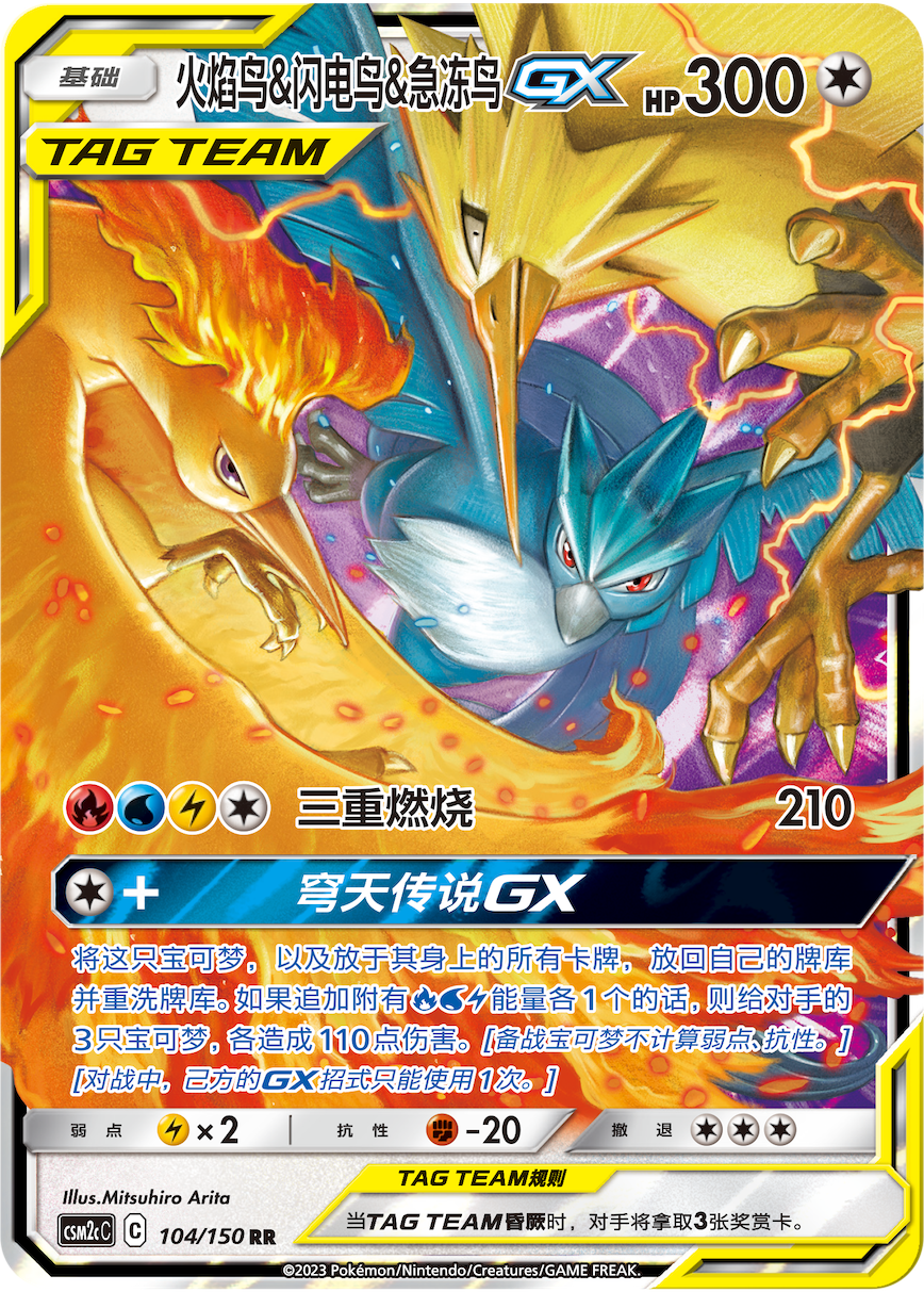 最值得称赞的还是【双重烈焰GX】,在附着3个火属性能量时就能造成200点伤害,若追加附着3个火属性能量,还能追加100点伤害,伤害总额达到了300点,同时本次攻击还不计算对手宝可梦身上所附加的效果。在烈焰面前,对手的一切举动都是徒劳!