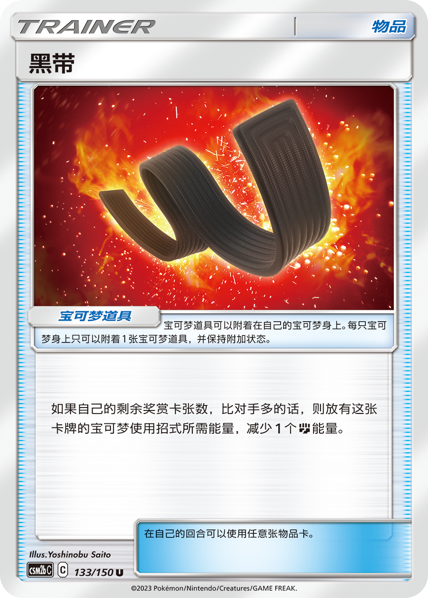 在实战中若对手领先我们,即己方奖赏卡比对手要多的时候,道具卡【黑带】可让身上放有这张卡牌的宝可梦在使用招式时,减少一个斗属性能量。同时场上若存在竞技场卡【格斗道场】,亦可使附有斗属性能量的宝可梦,其招式造成的伤害+40点。配合玛夏多&怪力GX压迫力十足!