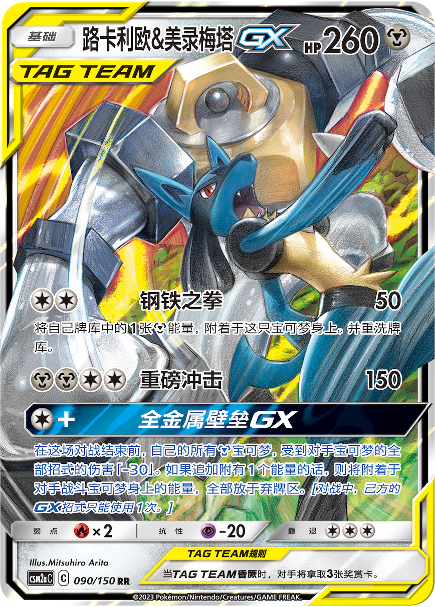 强力钢属性宝可梦——路卡利欧&美录梅塔GX将在补充包【沐】里闪亮登场,它可以为你牌组中的其他钢属性宝可梦提供有效防护。