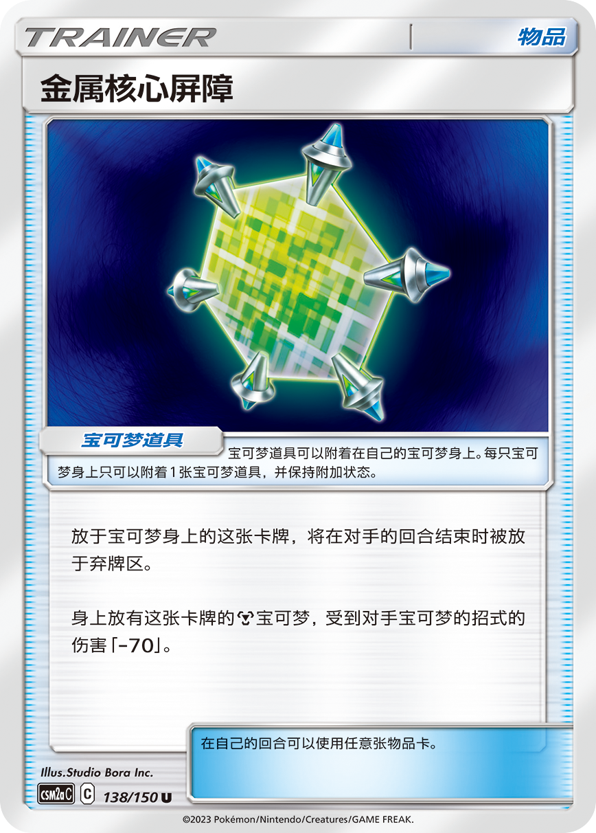 宝可梦道具【金属核心屏障】在对手回合结束后会进入弃牌区,但却能让身上放有该卡牌的钢属性宝可梦,受到对手宝可梦招式的伤害减少70点!搭配路卡利欧&美录梅塔GX的【全金属壁垒GX】,100点的伤害对你来说只是挠痒痒。在己方战斗宝可梦承受了高额伤害,HP剩余不多的时候,还能通过玛奥&水莲撤回备战区并回复120点HP,让对手感受绝望吧!