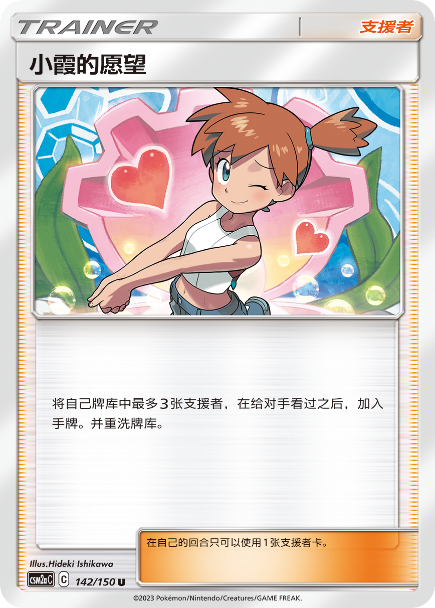 小霞的愿望可以快速为手牌添加支援者卡牌,配合呆呆兽&可达鸭GX的【丢丢飞溅】能造成可观的伤害。同时拉普拉斯的特性【人鱼呼唤】又能将弃牌区中的一张小霞的愿望加入手牌。有这两张卡牌的辅助,呆呆兽&可达鸭GX就可以成为你稳定的火力点持续造成伤害。