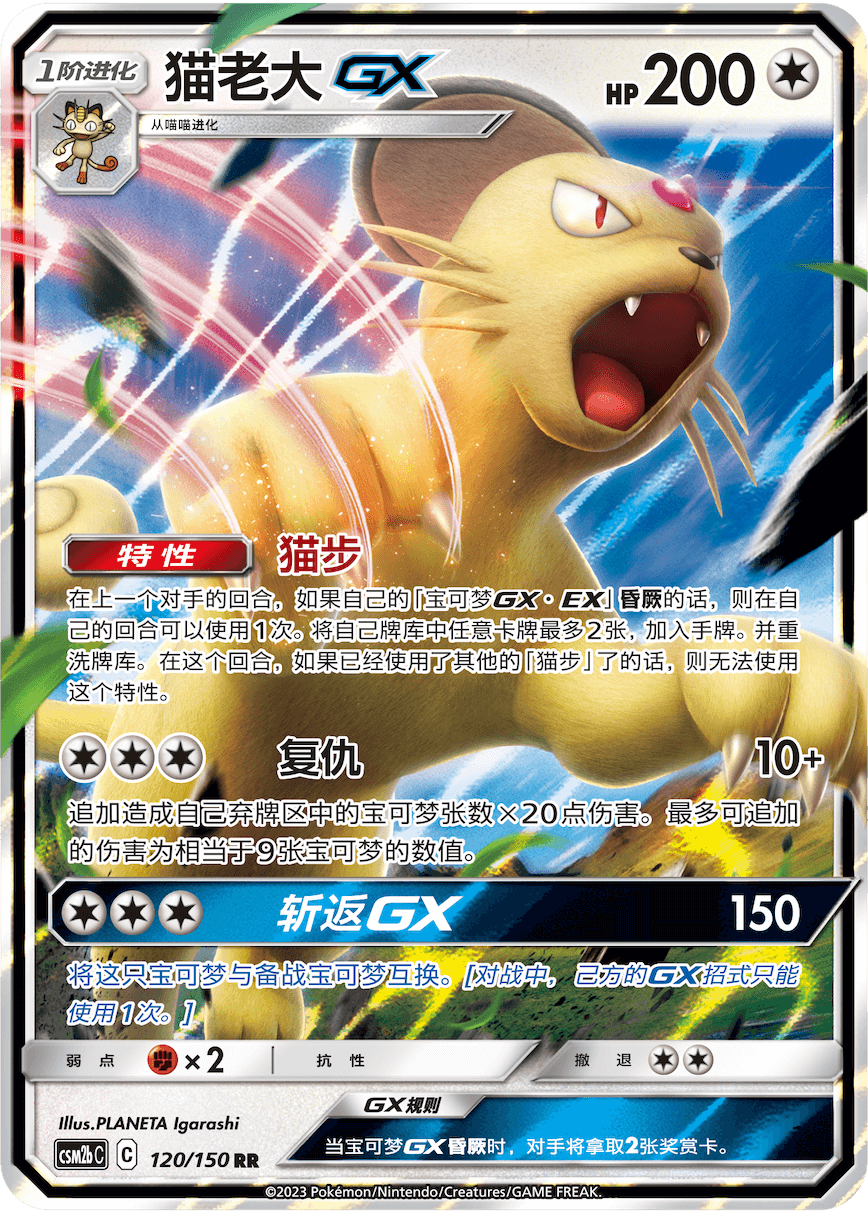 【抛掷压制】只需要4个任意属性能量即可发动,如果对手战斗宝可梦为进化宝可梦的话,还可追加120点伤害,总伤害高达240点!