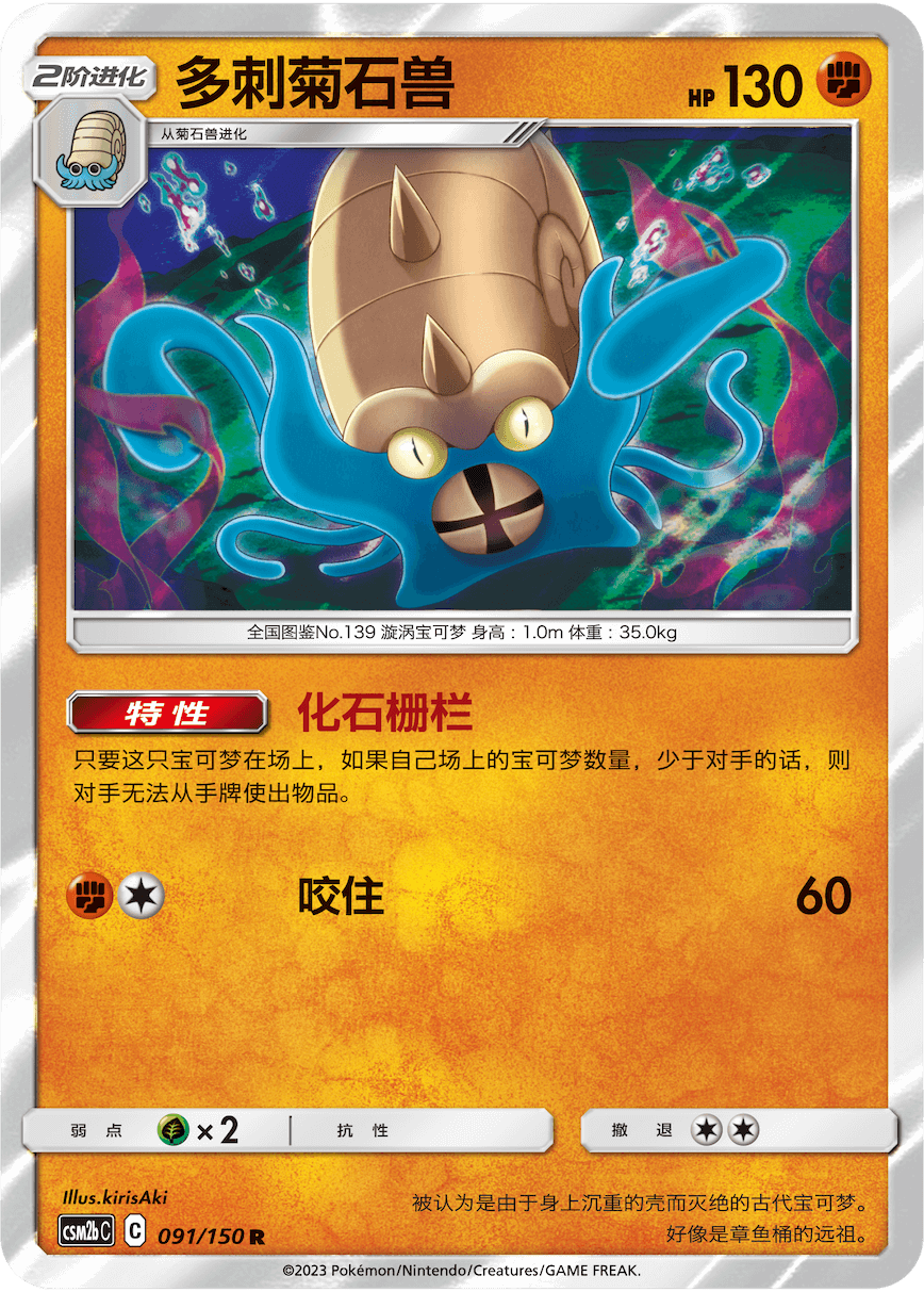 对手手牌中训练家卡牌越多,耿鬼&谜拟丘GX的【灵骚】造成的伤害就越高。通过使用惊吓箱,将对手弃牌区中的训练家卡牌放回对手手牌以提高伤害,抑或将对手故意想弃掉的卡牌再还给对手打乱节奏都是很好的选择。多刺菊石兽在己方场上宝可梦数量少于对手宝可梦的话,对手将无法从手牌中使用物品,使用得当能让对手加倍头痛。