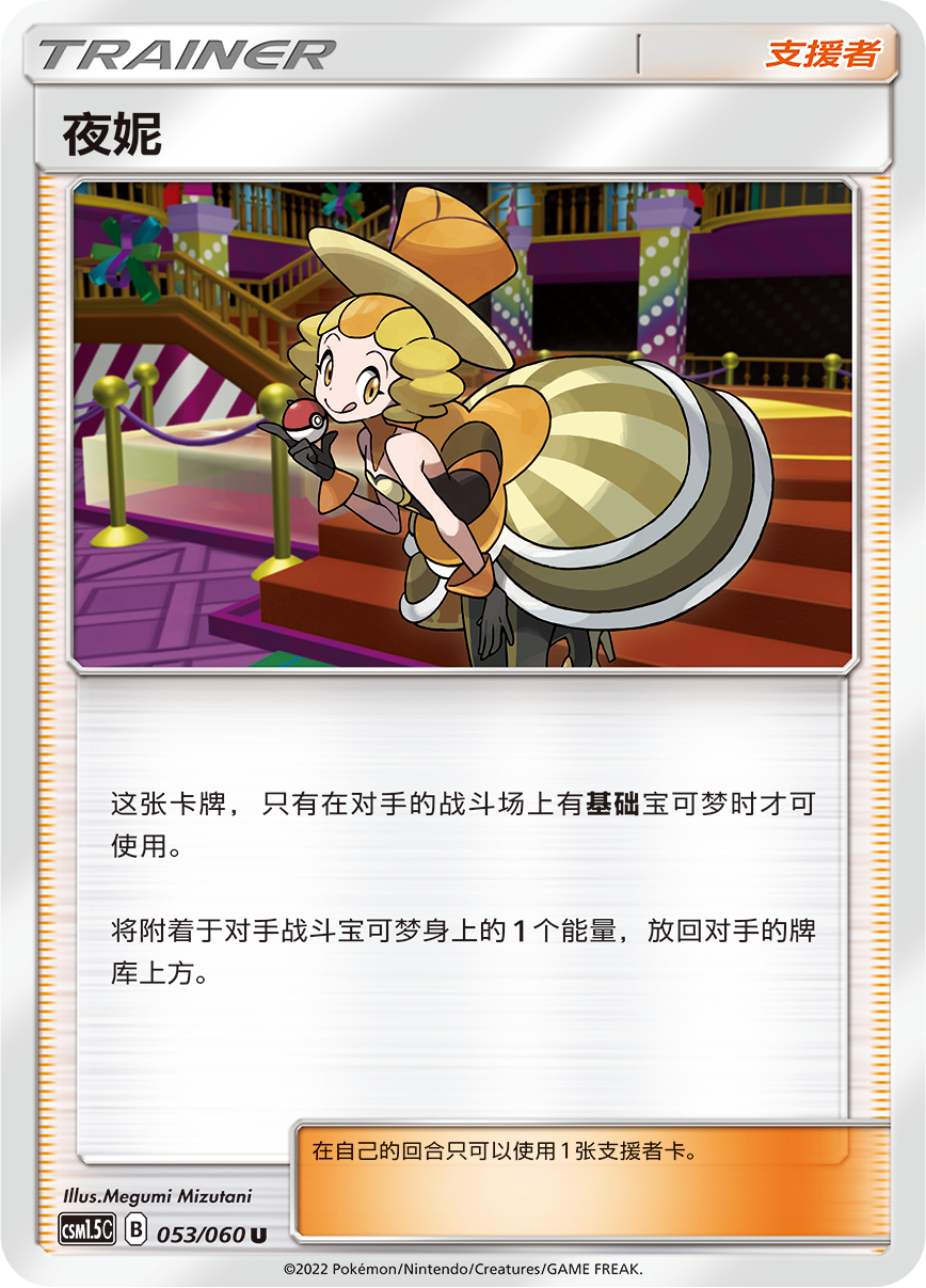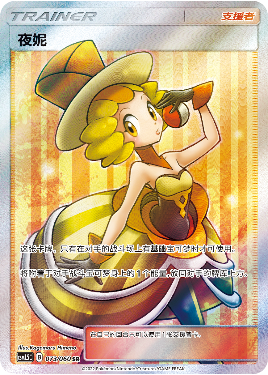 身为四姐妹中年龄最小的夜妮,她只可在对手的战斗场上有基础宝可梦的时候才能使用。