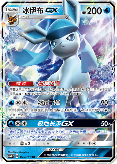 冰伊布GX拥有一个强大的特性【冻结之瞳】,只要冰伊布GX在战斗场上,对手的所有(包括场上、手牌、弃牌区等)宝可梦GX・EX的特性将全部失效。