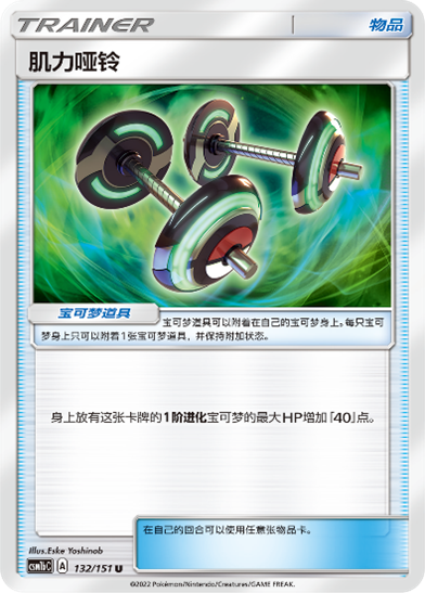 肌力哑铃可以让1阶进化宝可梦的HP上限提高40点,可将索罗亚克GX的HP一口气提升至250点,极大提高索罗亚克GX的在场时间。
