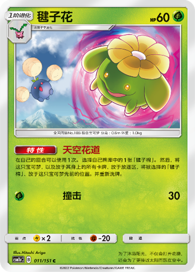 毽子花的特性【天空花道】发动后可将该张毽子花及身上的所有卡牌放于放逐区,同时将牌库内的一张毽子棉替换自己。既能让毽子棉快速登场,同时也能增加放逐区内的宝可梦数量,让毽子棉的【放逐行军】打出更高伤害。