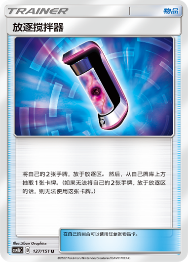 放逐搅拌器也可稳定有效的将2张手牌放于放逐区,同时从牌库抽一张牌,具备快速过牌以及增加放逐区卡牌数量的双重功能于一身,毽子棉+毽子花+放逐搅拌器的威力必须要亲自尝试才知道。