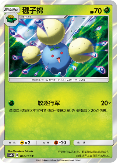 毽子棉的【放逐行军】仅需一个草属性能量即可发动,可造成己方【放逐区】内宝可梦(不包含棱镜之星)张数x20点伤害。