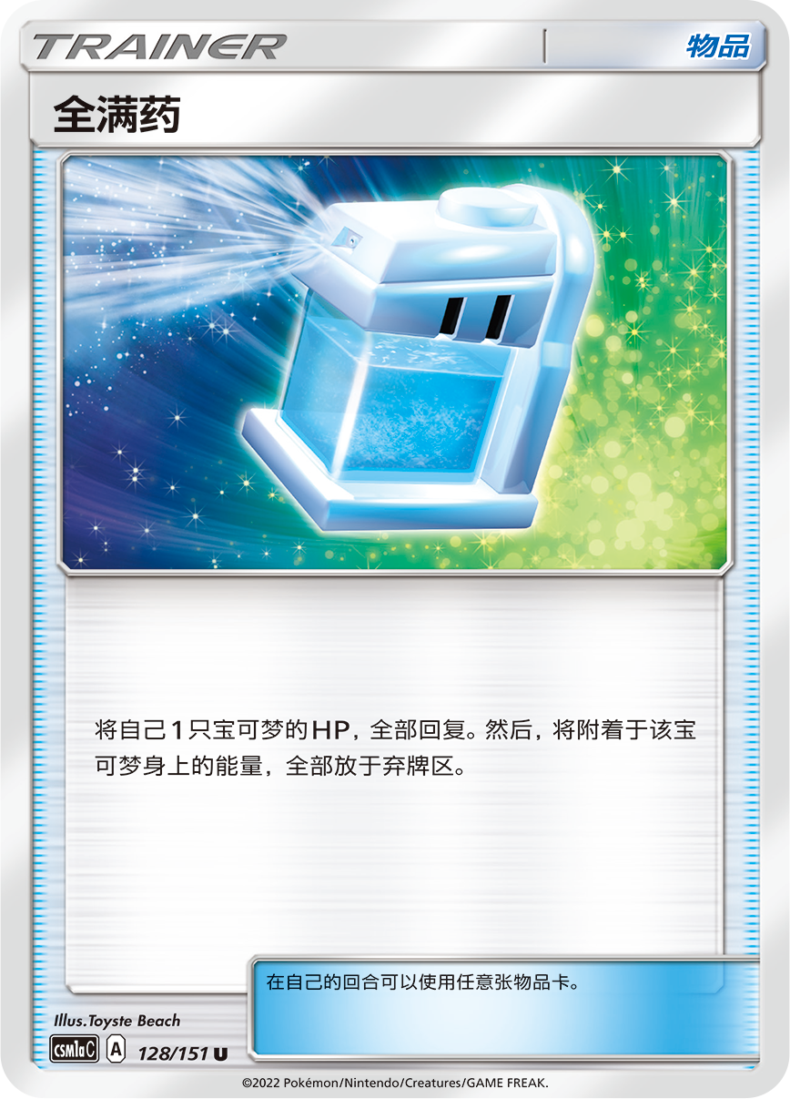 由于露奈雅拉GX每回合都可将附于自身的超能量转附给其他宝可梦,因此它与使用后可以回满HP但却要丢弃身上能量的【全满药】非常匹配。