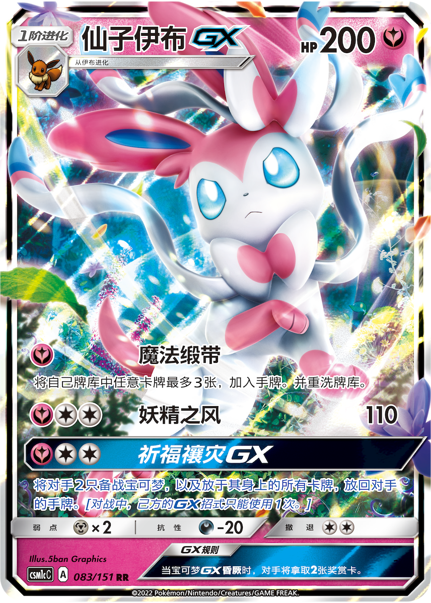 仙子伊布GX能为训练家提供多变的战术选择。【魔法缎带】能从牌库内寻找最多3张你想要的手牌,【妖精之风】则能造成稳定的伤害。每回合是补充手牌还是积极进攻就取决于训练家的选择。