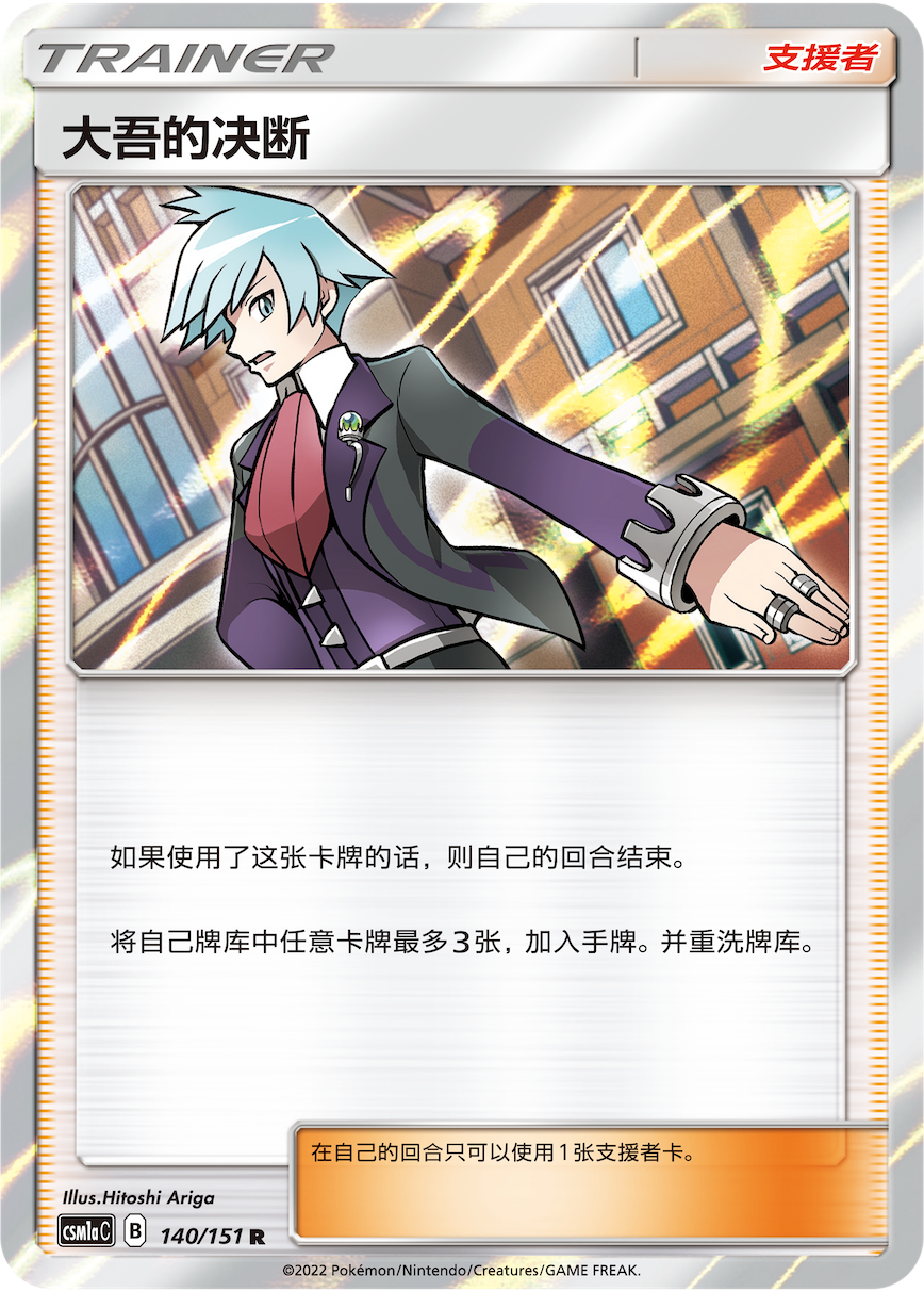 支援者卡【大吾的决断】可从牌库里任选3张卡牌加入手牌,作为一张强力卡牌的同时使用后却要强制结束自己的回合。但只要有巨金怪在场,就算使用了【大吾的决断】也不会回合结束。那么只要利用好巨金怪、巨金怪GX以及大吾的决断,我们就能瞬间拿到想要的手牌掌握战局。