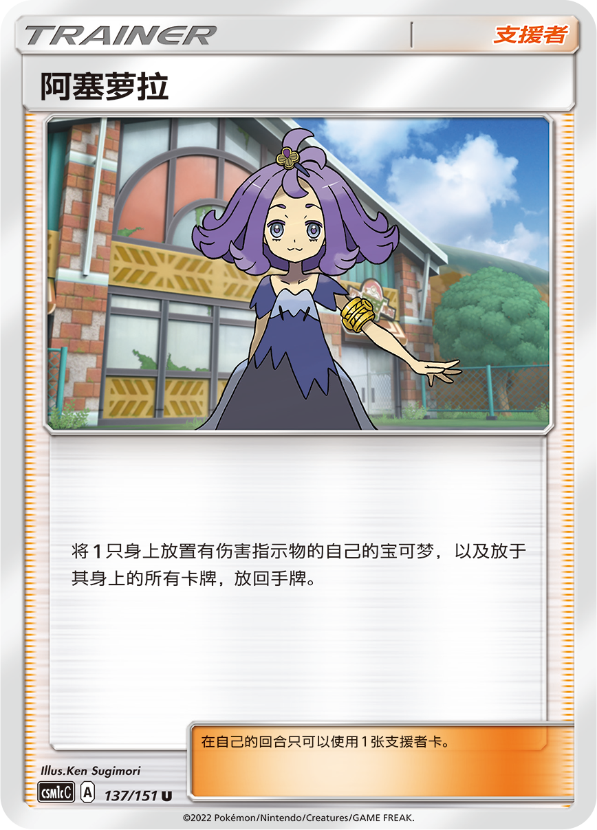 支援者卡【阿塞萝拉】可让受伤的路卡利欧GX安然返回手牌,搭配竞技场卡【潺潺之丘】则能让路卡利欧GX反复登场。好好利用【波导击】进化后当回合内增加伤害的特征,不断地登场、进化吧。