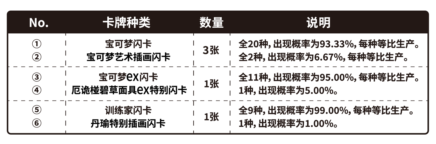 1张固定为宝可梦ex闪卡。