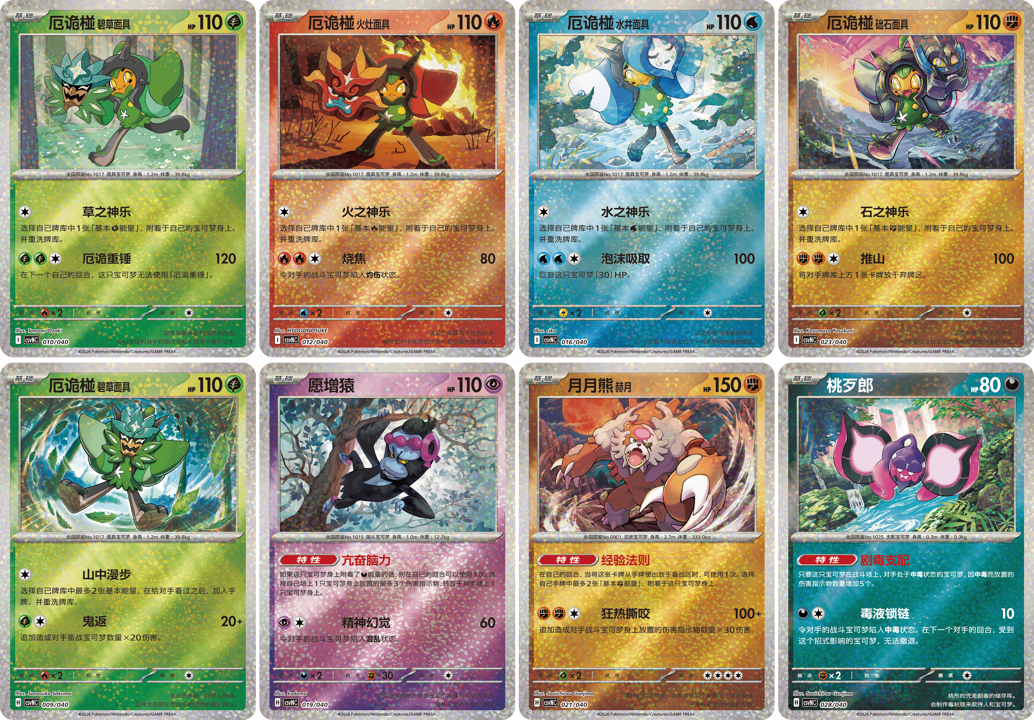 本次最新推出的宝可梦卡牌厄诡椪系列礼盒就包含了“北上乡专题包”在内。礼盒分为“碧草面具”“火灶面具”“水井面具”及“础石面具”4款,分别对应4种风格,哪一款才是你的菜呢?