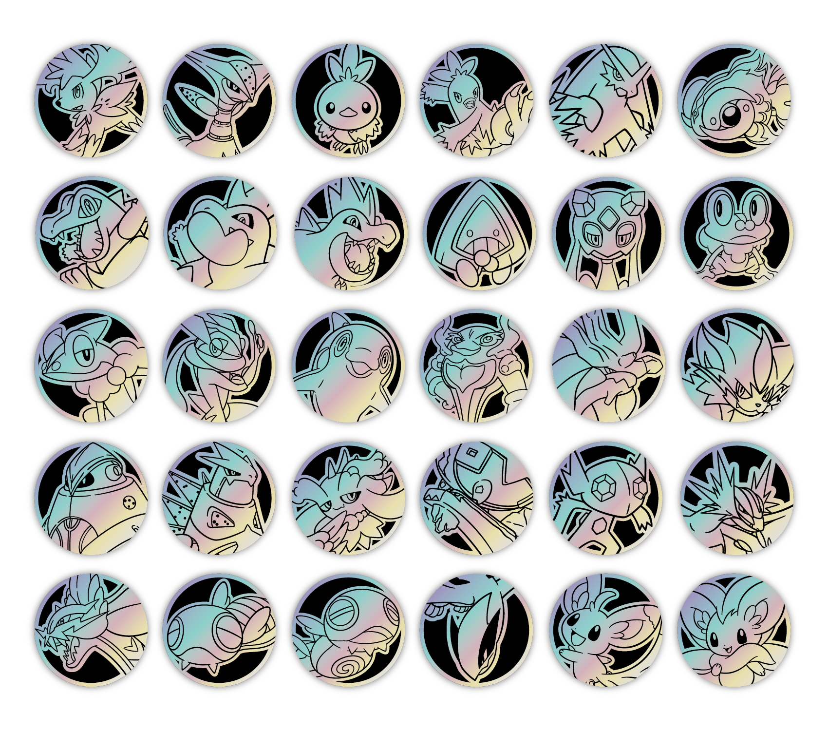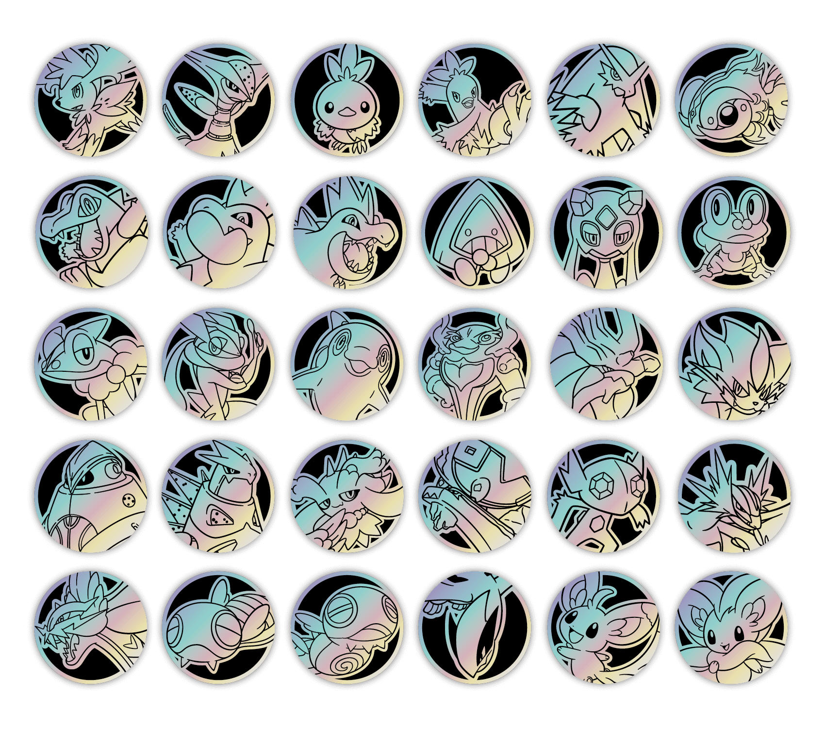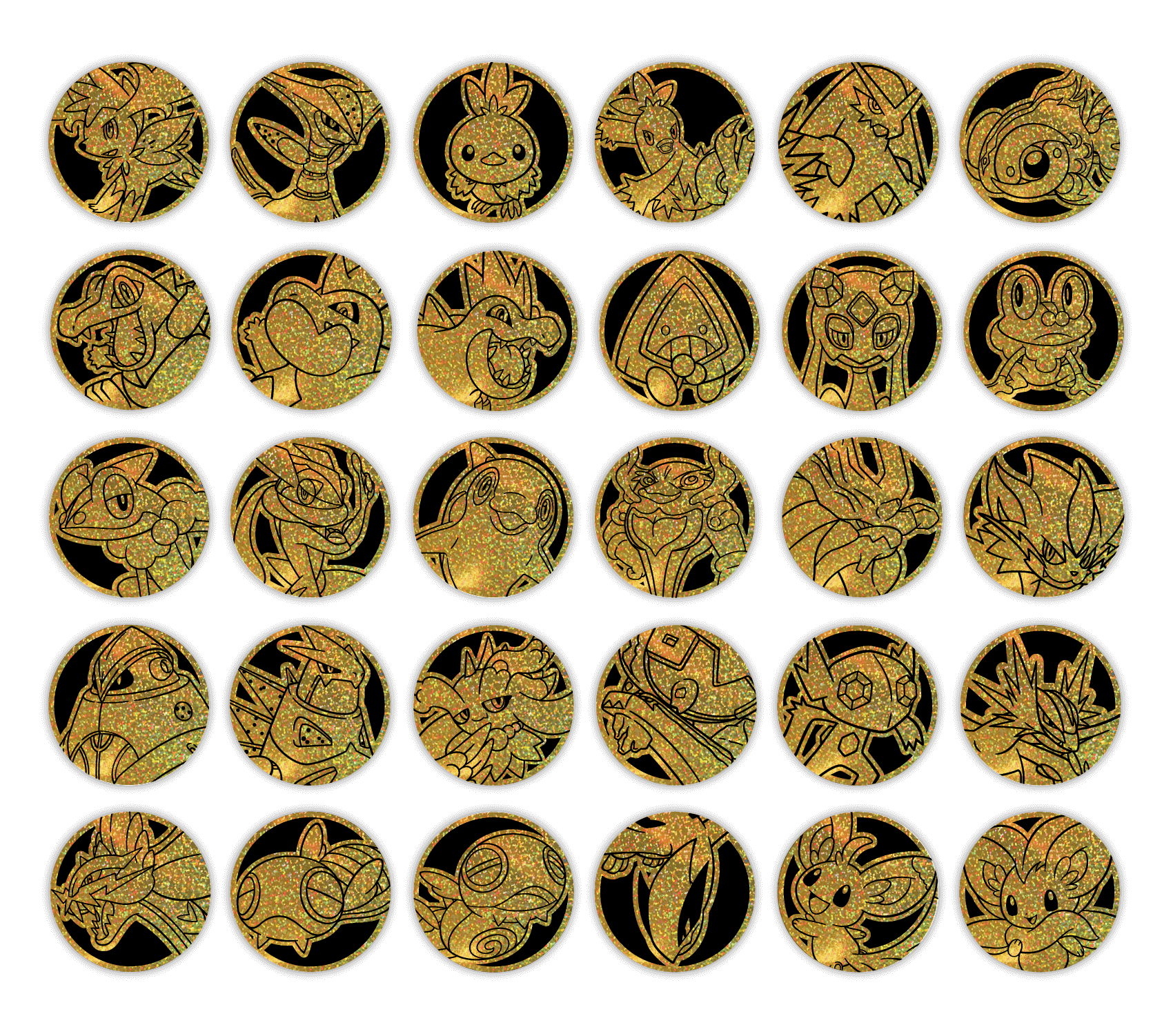 套装内含的宝可梦主题硬币与利刃猛醒精选闪卡的宝可梦相对应。每只宝可梦的主题硬币都有3种款式。
