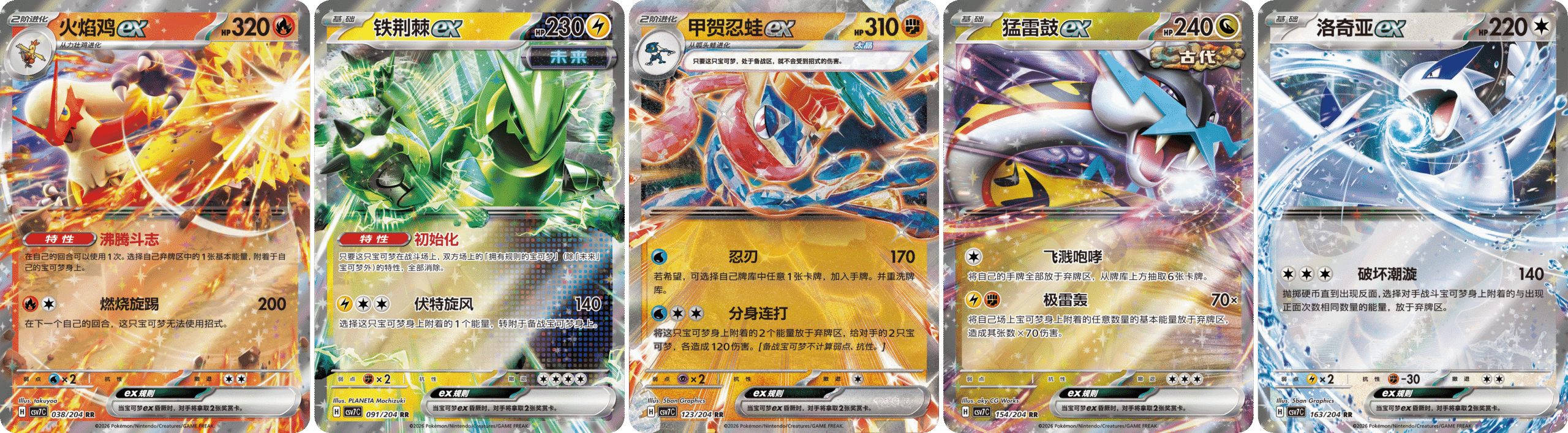 利刃猛醒精选闪卡共30种,每种等比生产。其中,RR稀有度的宝可梦闪卡5种。