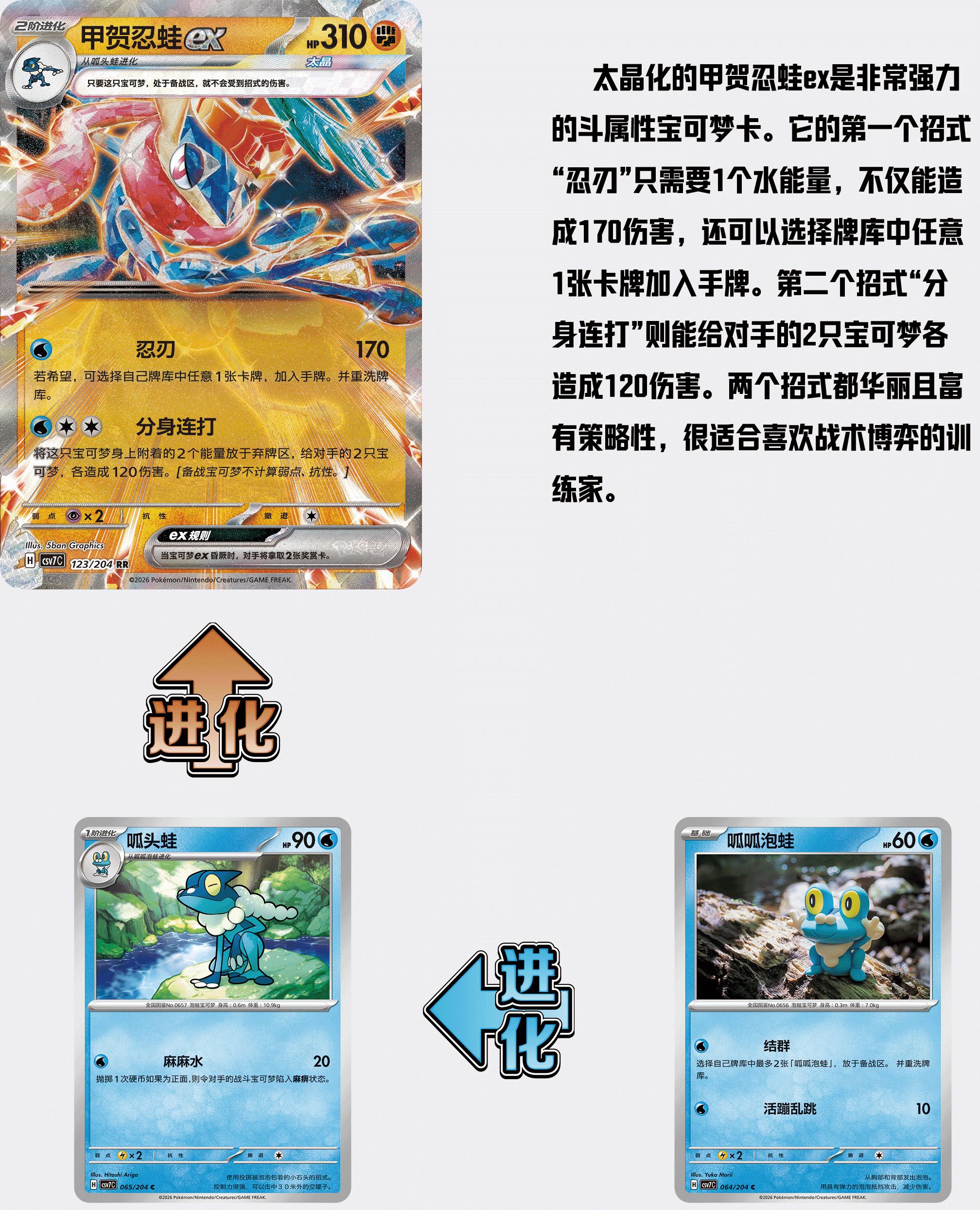 2026年1月16日,宝可梦卡牌最新补充包商品“利刃猛醒”将和大家见面。补充包内不仅封入了太晶化的甲贺忍蛙ex,还有更多“古代”与“未来”的卡牌。全新的ACE SPEC卡牌也将重磅登场,为大家带来崭新的对战和收藏体验。内含“利刃猛醒”补充包的全新套装商品也将随之发售。