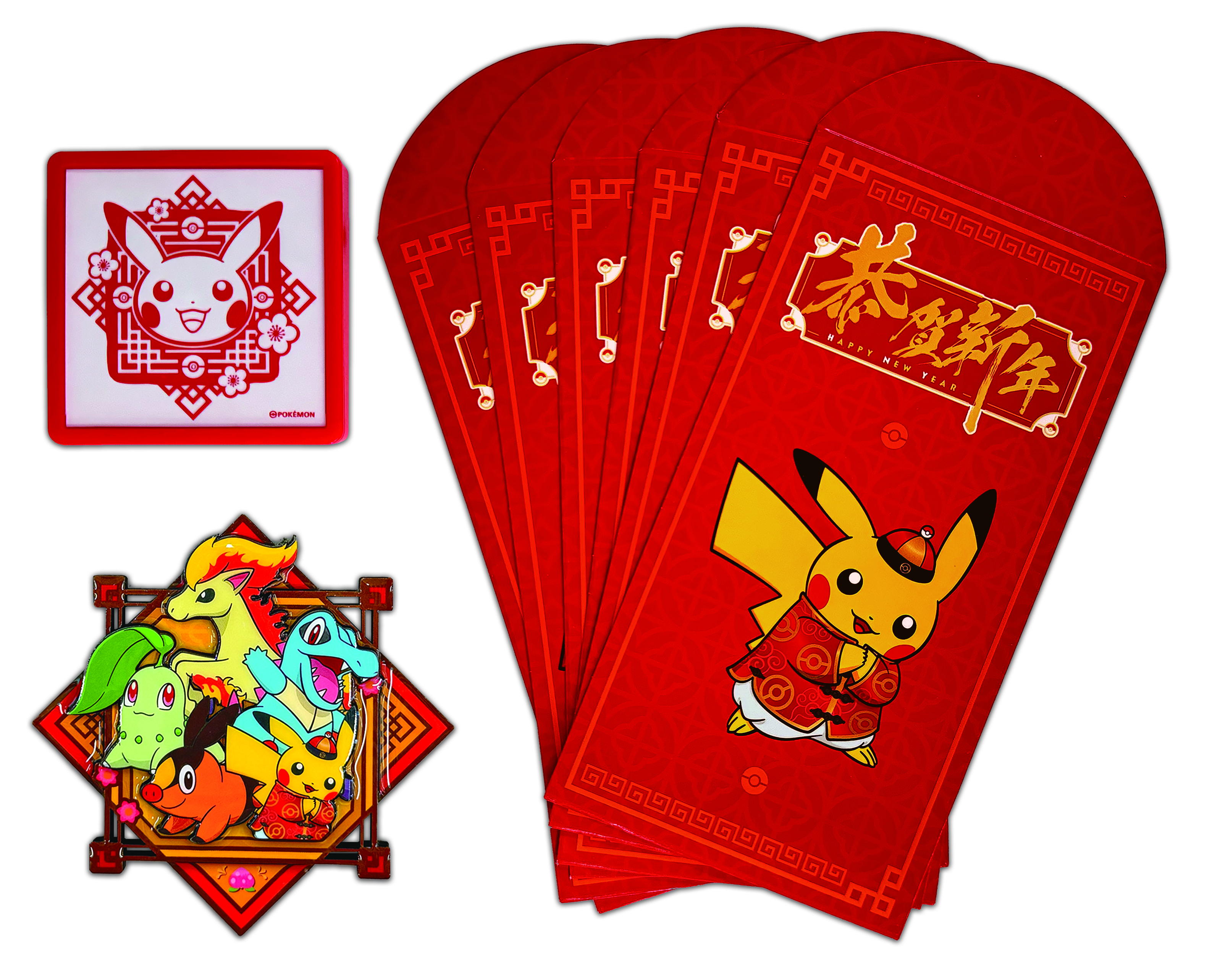 礼盒内有1个宝可梦新春主题印章,1个宝可梦新春主题冰箱贴,和6个宝可梦新春主题红包。可爱的宝可梦搭配喜庆的红色,一眼就让人感受到了喜庆热烈的新年氛围。