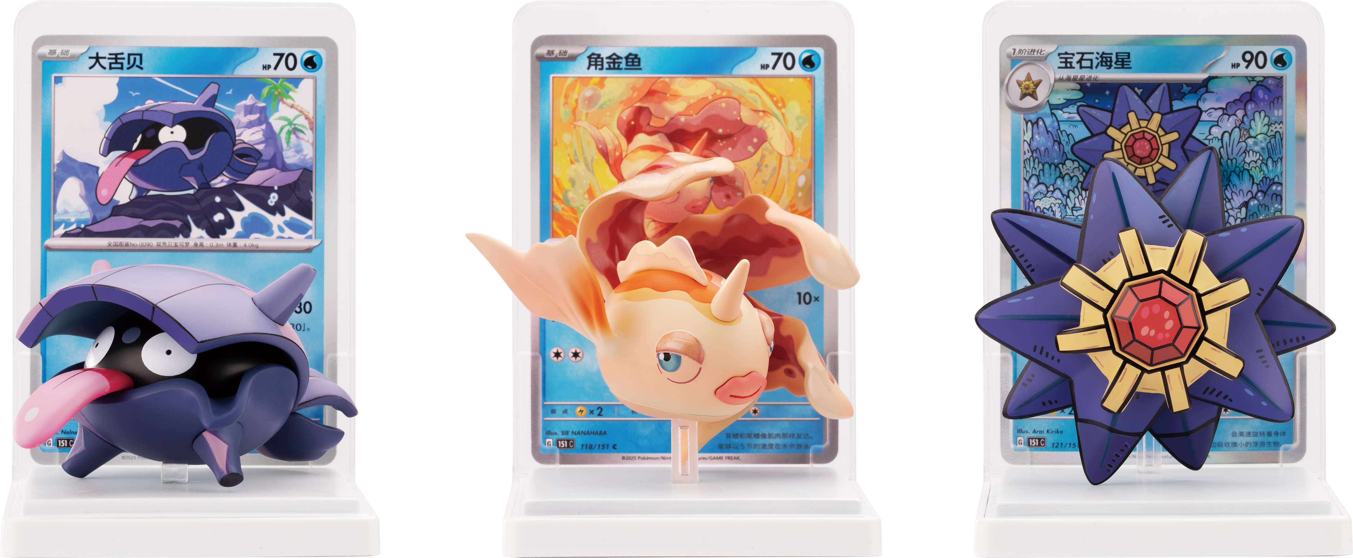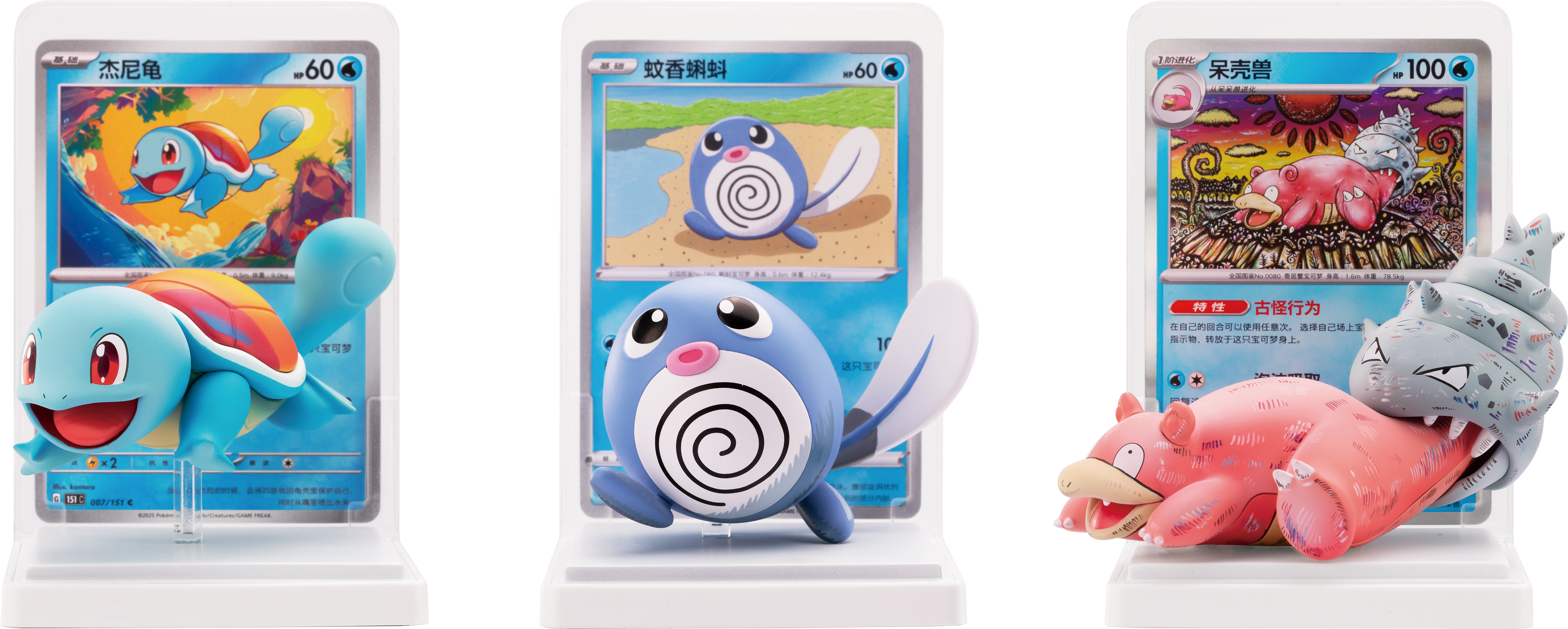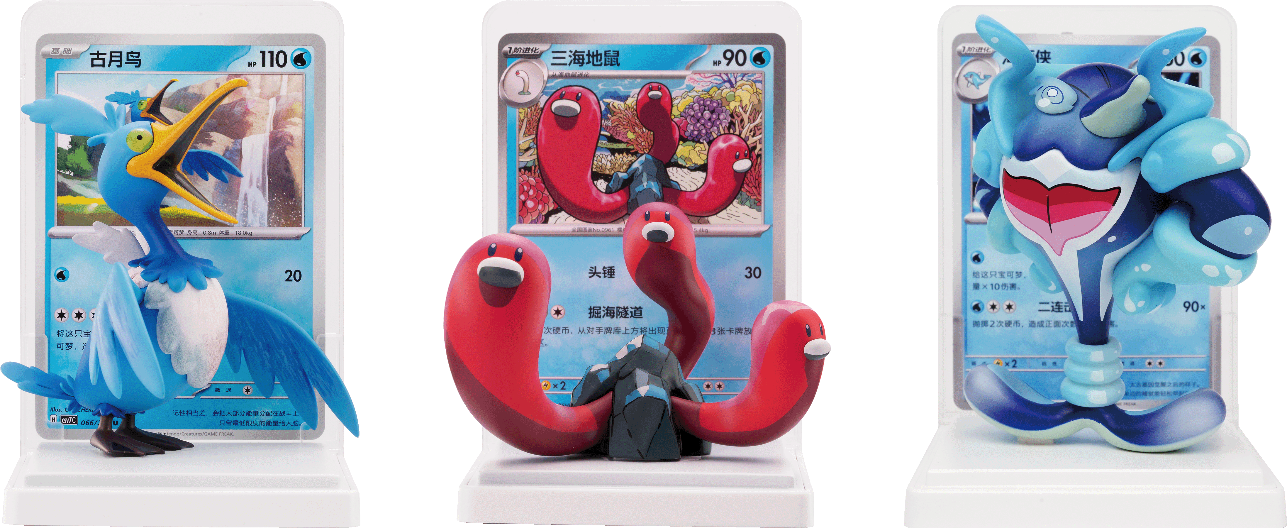 在池塘、湖泊或者大海等水环境中,生活着种类丰富的水属性宝可梦。“绘梦点睛 水生态手办套装”就收录了多种水属性宝可梦的手办。套装内还包含一张与宝可梦手办对应的宝可梦卡。将手办和卡牌一同放置于展示台上,感受宝可梦从插画中“走出来”的感觉吧。