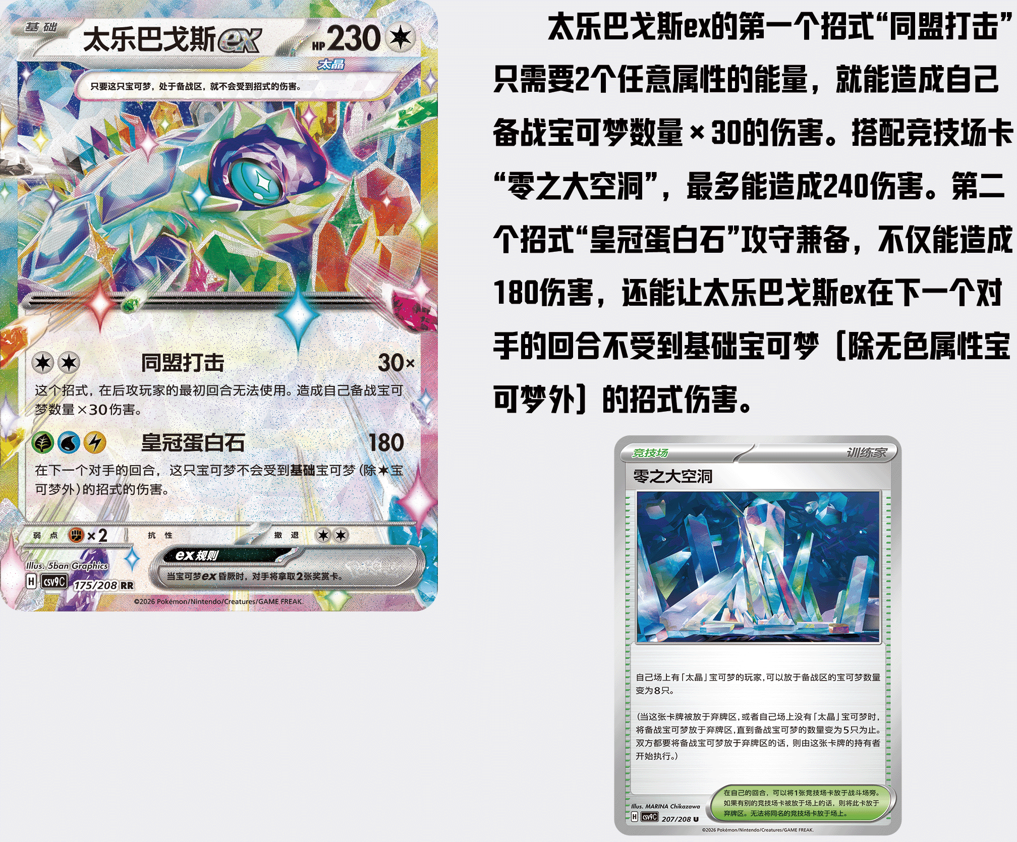 补充包“星彩晶璃”中收录了多种太晶属性为“星晶”的宝可梦ex!这些宝可梦ex都拥有需要三种不同属性的能量才能使用的招式。虽然这些招式对能量的需求很高,但它们的伤害或效果都极为强大!