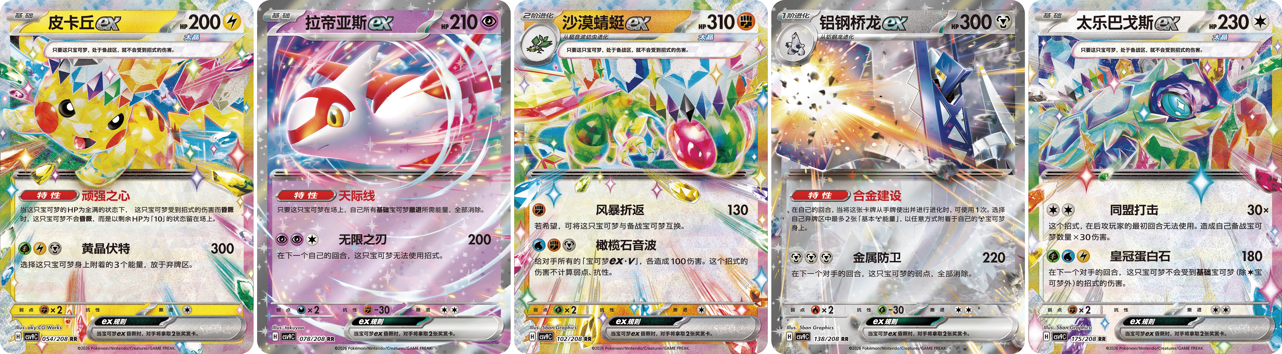 星彩晶璃精选闪卡共30种,每种等比生产。其中,RR稀有度的宝可梦闪卡5种。