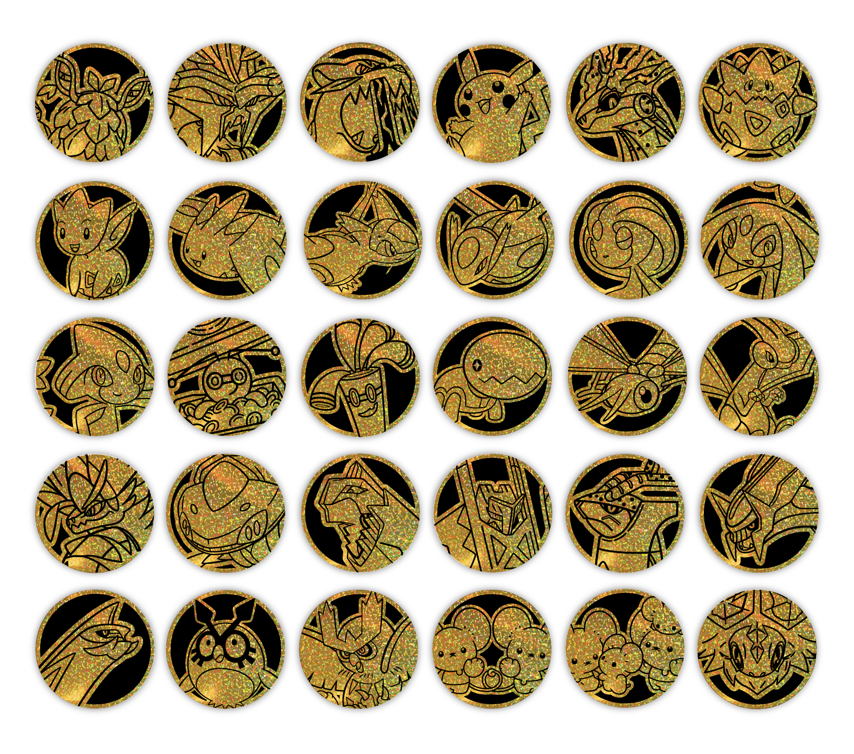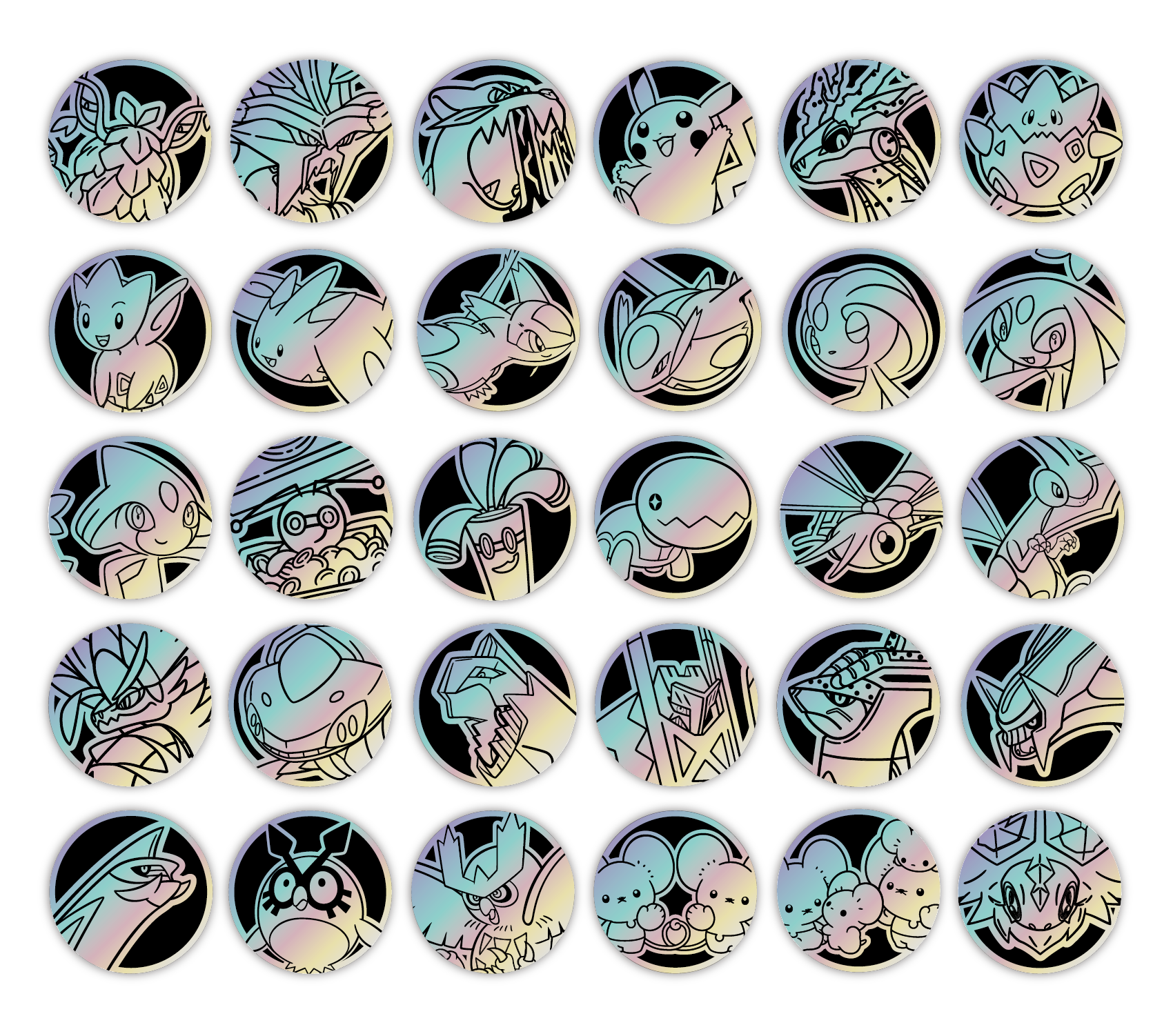 套装内含的宝可梦主题硬币与星彩晶璃精选闪卡的宝可梦相对应。每只宝可梦的主题硬币都有3种款式。