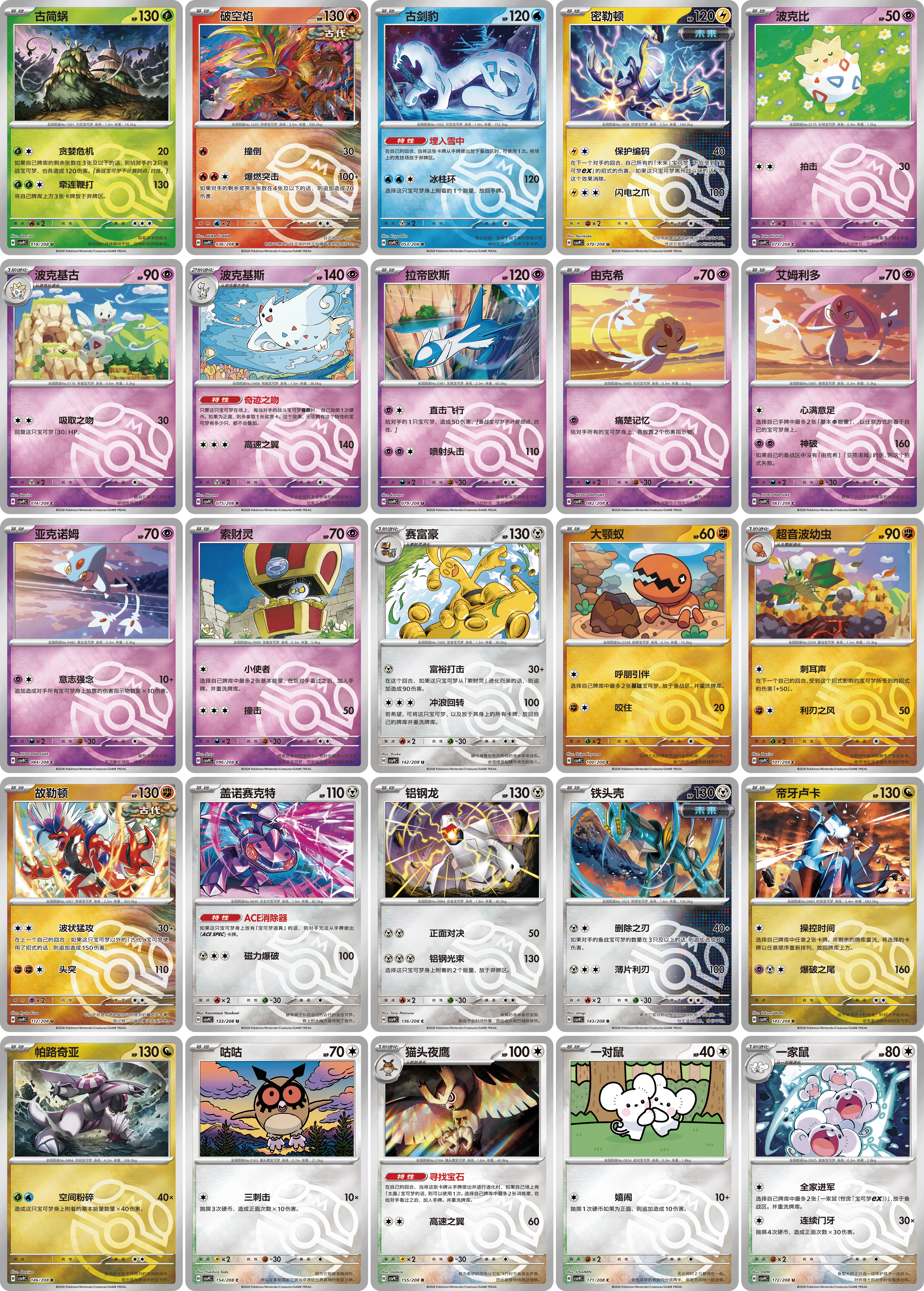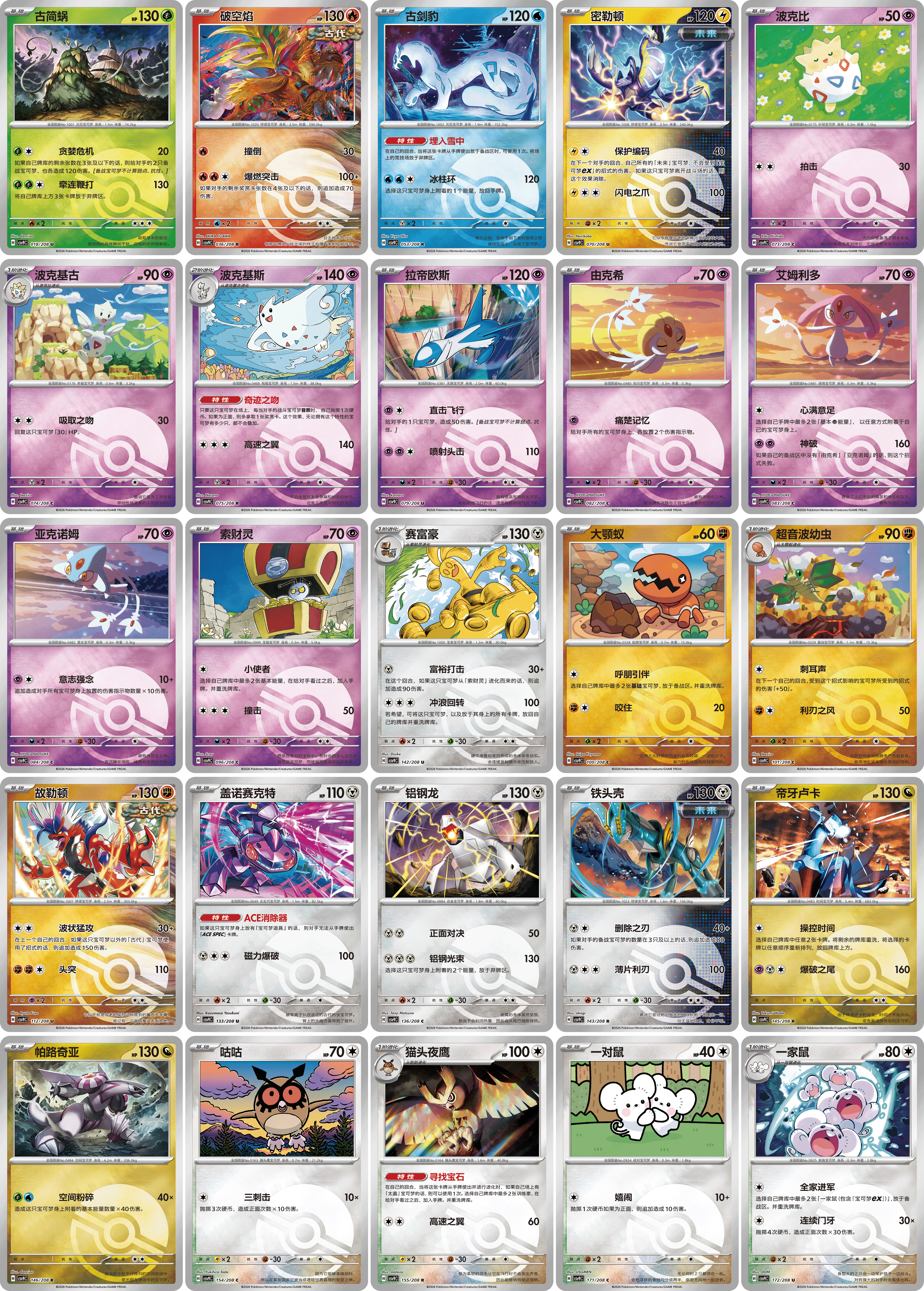 C/U/R稀有度的宝可梦闪卡合计25种。并且,C/U/R稀有度的宝可梦闪卡既可能是精灵球纹样的闪卡,也可能是大师球纹样的闪卡。(精灵球纹样闪卡与大师球纹样闪卡的生产配比为99:1)